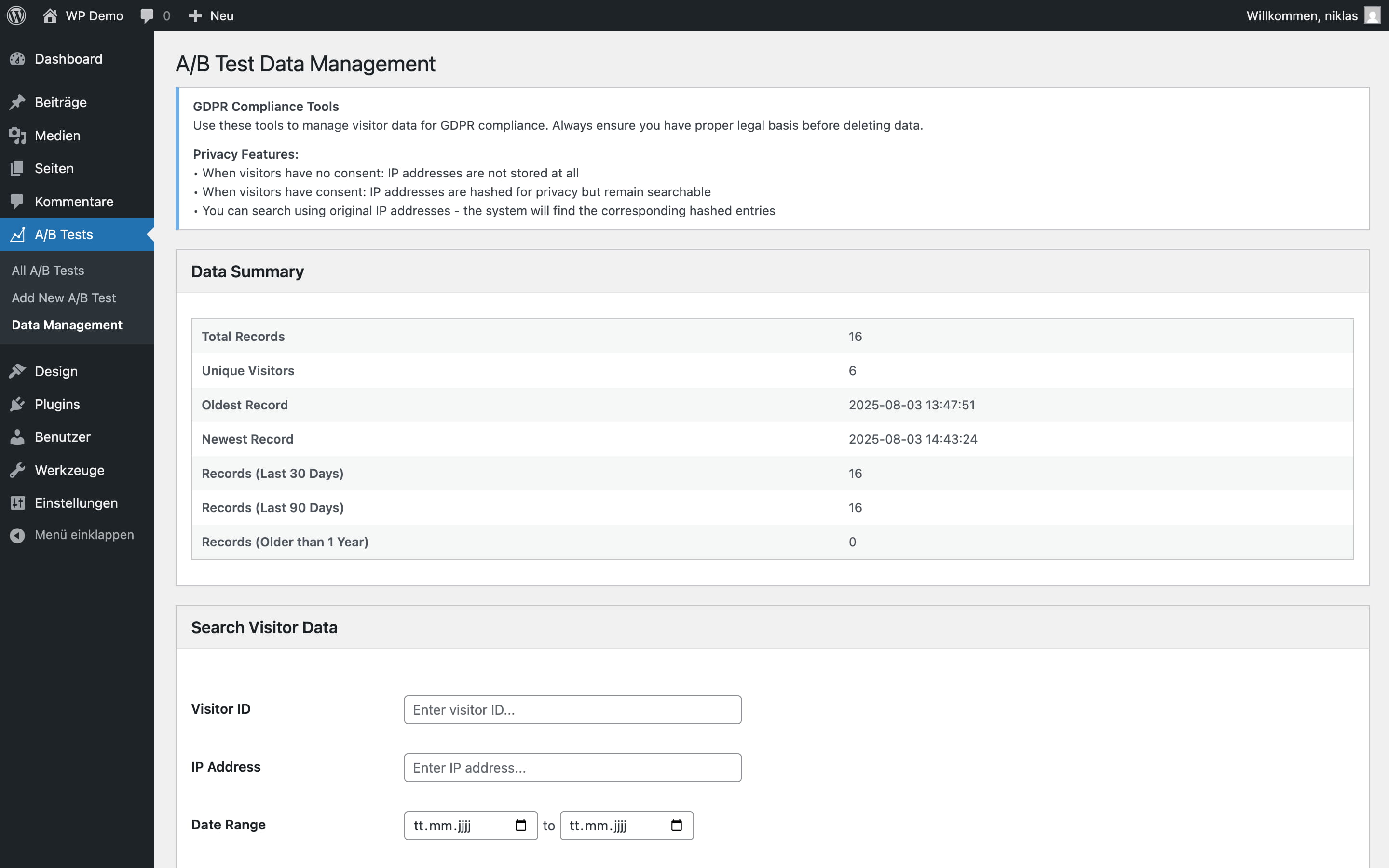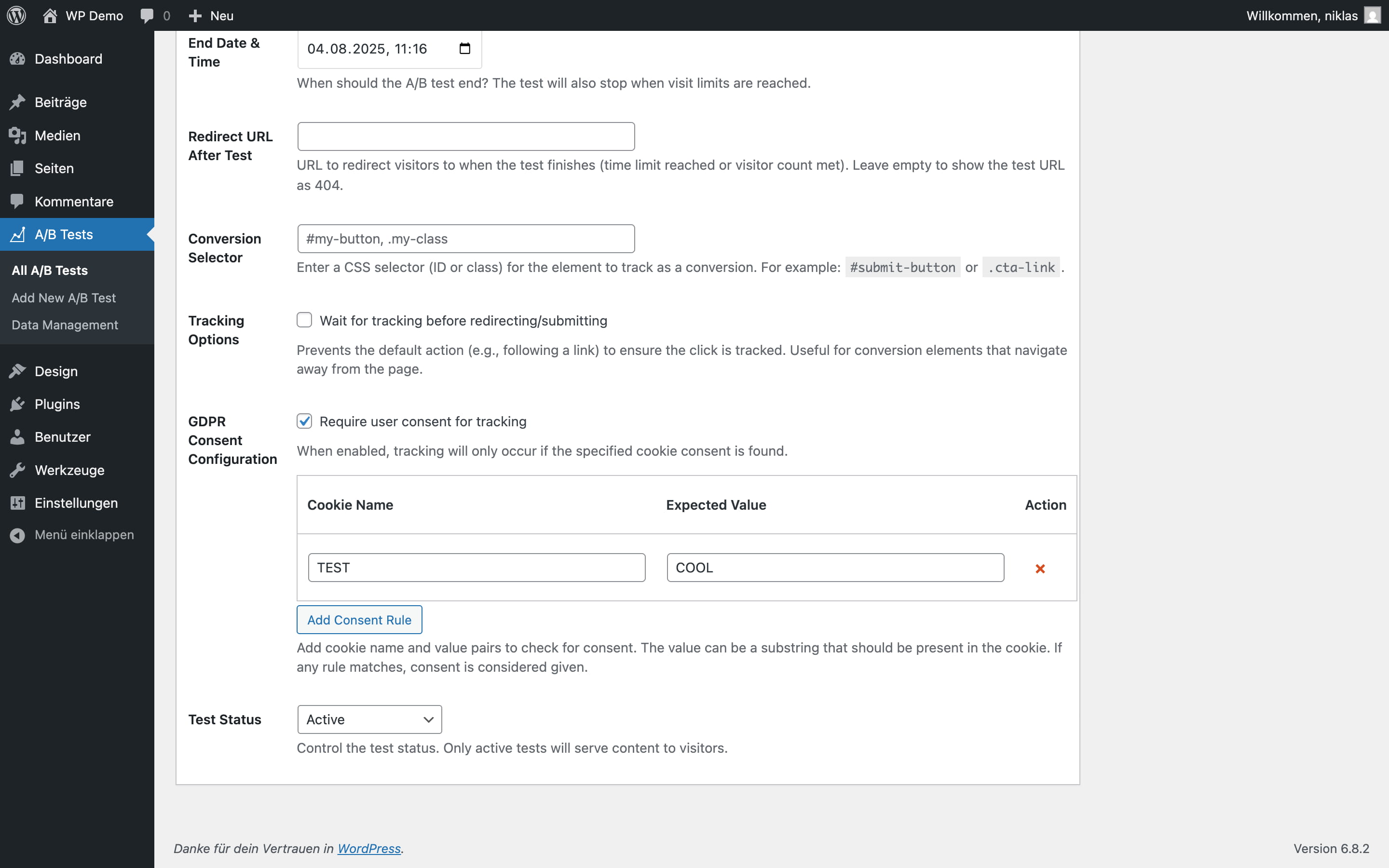 In the modern web, privacy isn't an afterthought—it's a requirement. The A/B testing plugin is designed with GDPR and user consent at its core. You have full control over tracking, with options to hash IP addresses and make tracking conditional based on user consent from popular cookie banners. The plugin’s flexible consent rules allow it to integrate with virtually any consent management platform. This respectful approach not only helps you comply with privacy regulations but also builds trust with your audience. Please note: While these features are designed to assist with your privacy obligations, this plugin does not guarantee full legal compliance. It is strongly recommended consulting with a qualified legal professional to ensure your website meets all regulatory requirements.