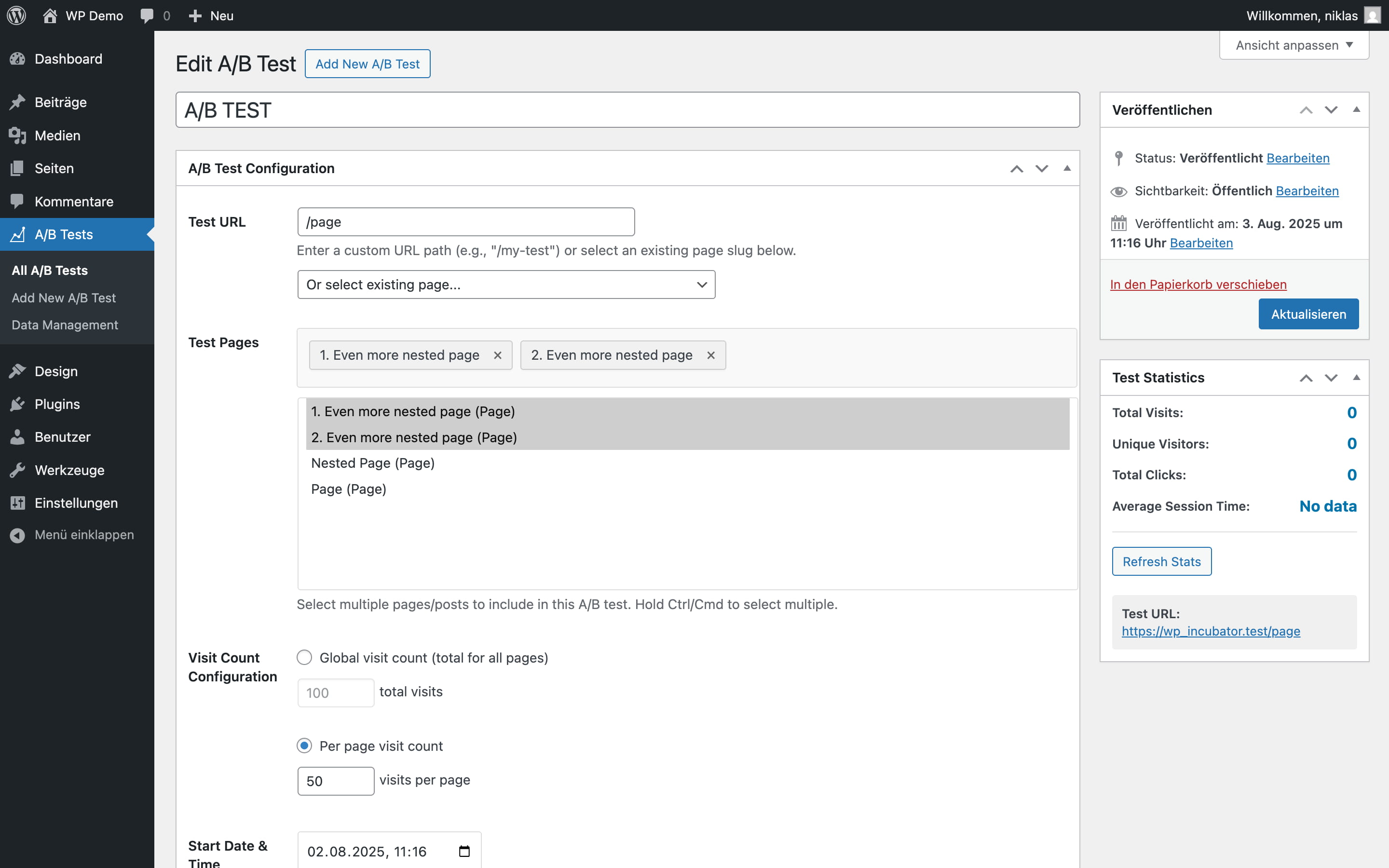 Advanced A/B testing plugin for WordPress with visit tracking, timeframe controls, and automatic test management.